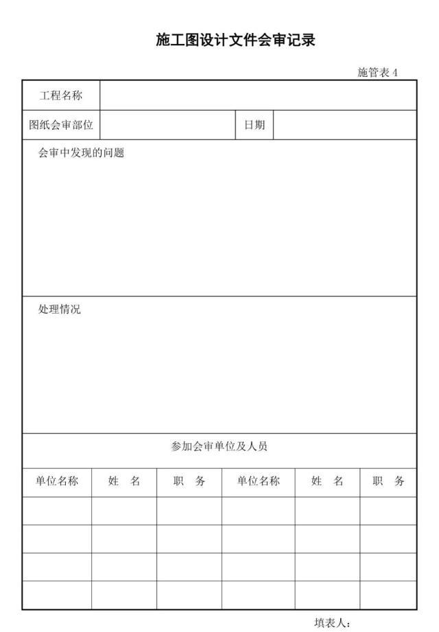 備 注:上表為城市(市政)道路工程國(guó)標(biāo)使用表格,各地表格存在差異,優(yōu)先選用各地方要求的相應(yīng)表格,其次考慮使用國(guó)標(biāo)表格,再次為了方便圖紙會(huì)審分類管理,也可參考使用下表。圖紙會(huì)審記錄需各單位項(xiàng)目負(fù)責(zé)人簽字,加蓋公章,作為施工圖紙的補(bǔ)充,后期為結(jié)算工程量提供依據(jù)。(以上僅供參考)