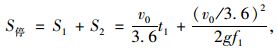 現(xiàn)行規(guī)范《公路工程技術(shù)標(biāo)準(zhǔn)》(JTG B01—2014)的停車視距由兩部分組成:①駕駛者在反應(yīng)時間內(nèi)行駛的距離S1(m);②開始制動到剎車停止所行駛的距離,即制動距離S2(m)。停車視距計算公式為: