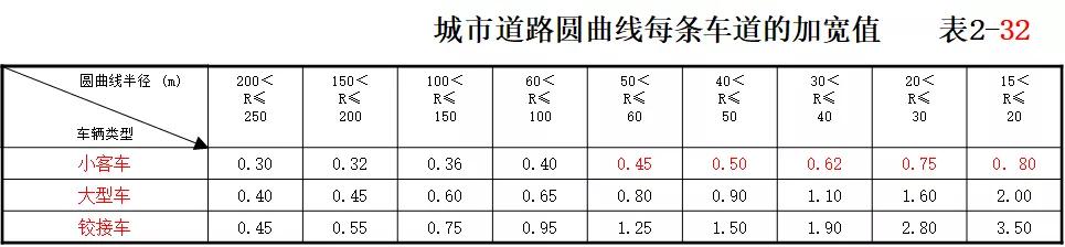 四級公路和設計速度30km/h的三級公路可采用第一類加寬值。